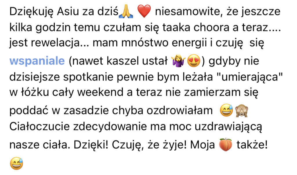 To nie mogłaś lepiej trafić. Warsztaty Ciałoczucie są dla kobiet, które są zainteresowane swoim ciałem, chcą je poznać, chcą je rozumieć, chcą mieć narzędzia do pracy z nim i nad nim, a przede wszystkim cieszyć się jego możliwościami!